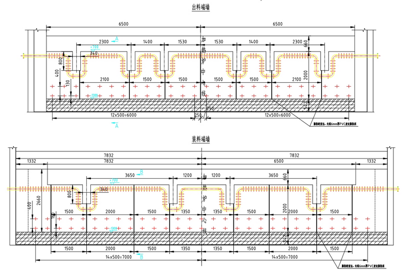 1.縱梁、橫梁及其立柱管均需包6mm厚的納米纖維毯及14mm厚的高鋁纖維毯以及60mm自流澆注料。